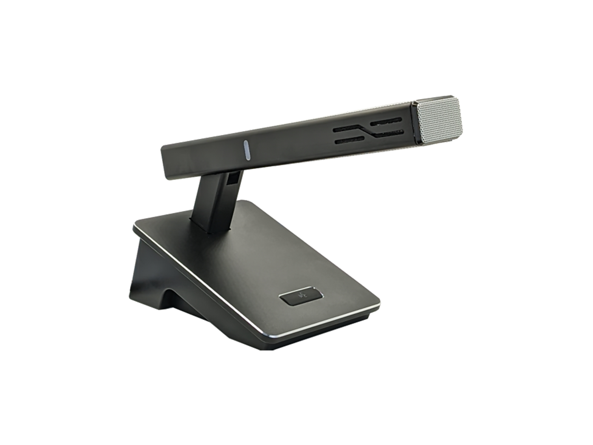l可调仰角方型短咪杆,内置电容式心型指向性拾音器,具有发言指示灯。